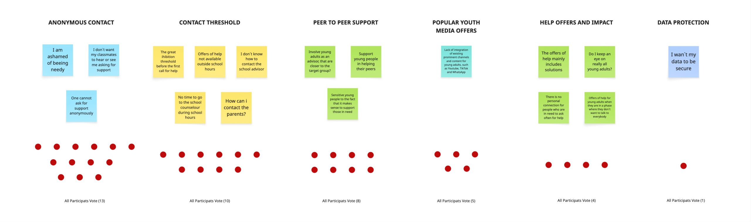 Synthesized insights into a clear design hypothesis. Prioritized problems through democratic voting with participants. Mapped the „hurdles hierarchy“ to identify technical vs. mental barriers in the help-seeking journey.