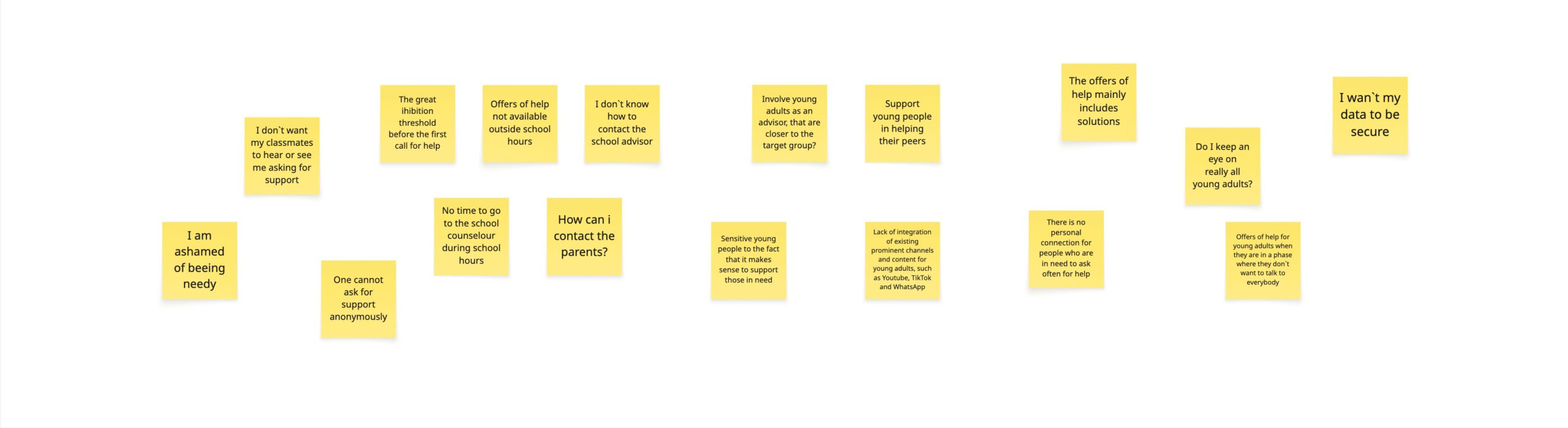 Conducted contextual research including legal analysis, moderated stakeholder discussions, and in-depth interviews with students in safe spaces. Identified barriers, pain points, and emotional needs through affinity mapping and problem clustering.