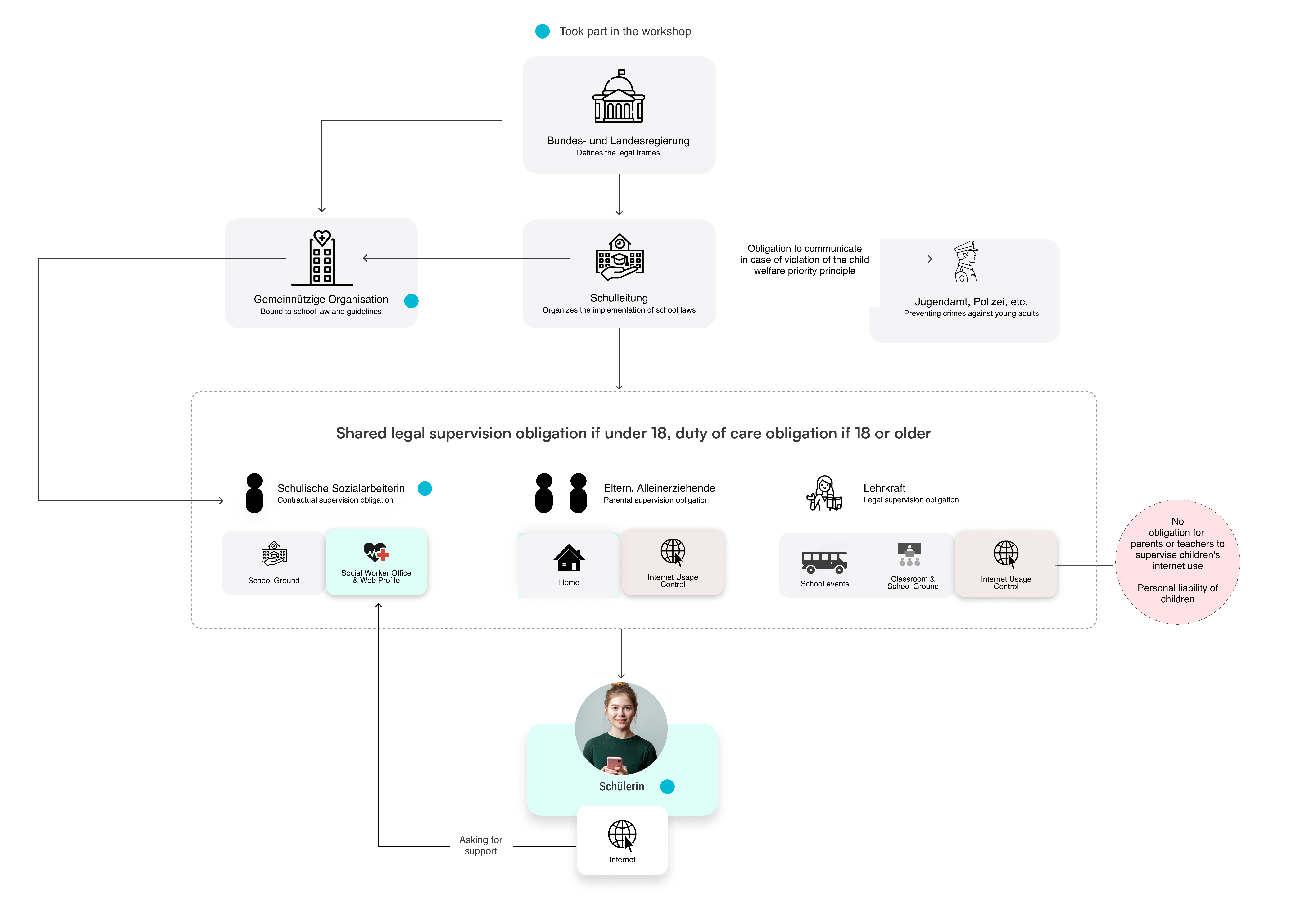 Young adults are obliged to go to school and the school staff are obliged to supervise the young adults during school hours and while they stay on the school ground.