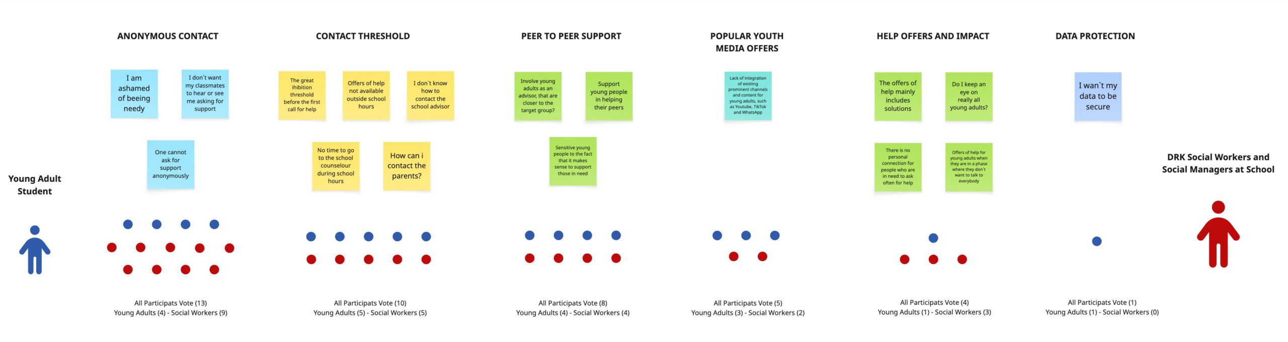 Critical finding: Young adults prioritized data protection and youth media channel integration; the social workers anonymous contact. The service needed to bridge both worlds.