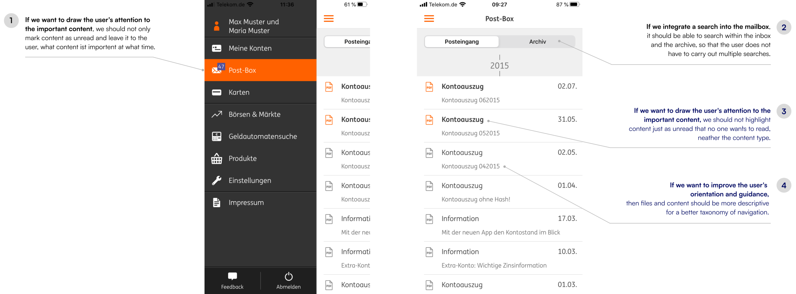 The ING Germany mobile banking app serves millions of users who rely on the post-box to access critical financial documents – from account statements to investment updates. However, user feedback revealed significant usability friction: customers struggled to find specific documents, confusion around archive functionality led to support calls, and the mobile experience lagged behind the web platform.
