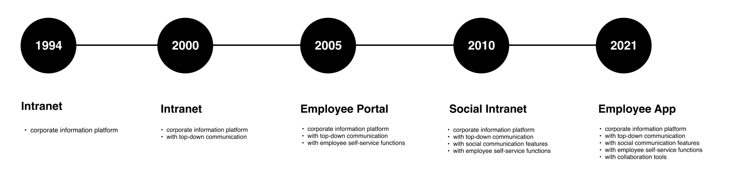 In collaborative workshops, we mapped the „ideal world“ employee experience and identified opportunities to introduce social intranet features at each stage.